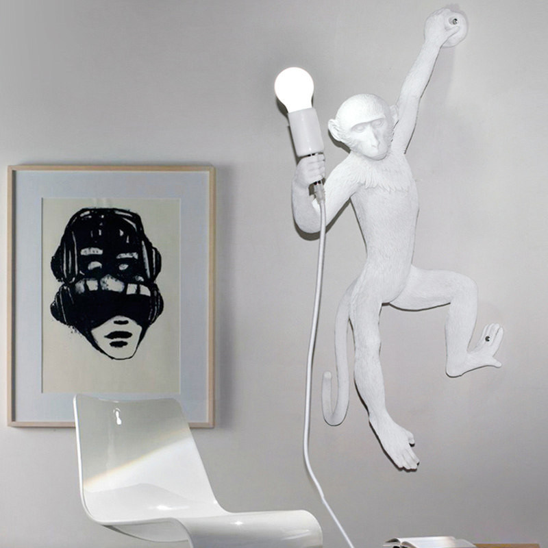 Luminária Monkey Wall Resina Preto Branco Dourado Lado Direito Esquerdo Monkey Wall Light (WH-VR-10)
