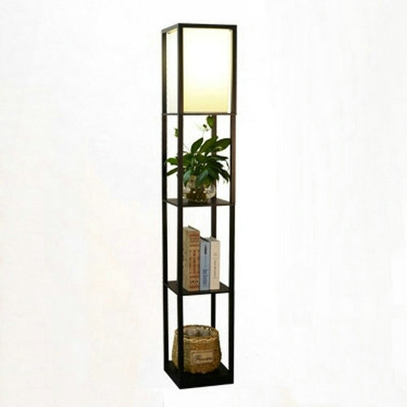 Lâmpada de assoalho branca de madeira decorativa moderna da prateleira do preto de lâmpada do assoalho do sótão do diodo emissor de luz (WH-MFL-113)