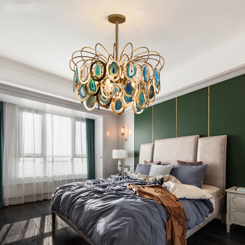 Candelabro nórdico colorido luxuoso moderno da ágata da fatia do teto da luz do diodo emissor de luz (WH-MI-181)