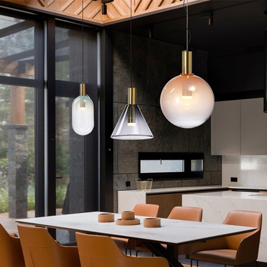 o pendente de vidro Cargo-moderno do diodo emissor de luz ilumina da sala de visitas nórdica do café do inclinação do projeto a lâmpada de pendente de suspensão das lâmpadas (WH-AP-143)
