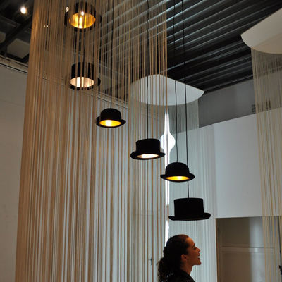 Candelabro principal criativo do preto da barra do restaurante da lâmpada do café industrial da loja da roupa do candelabro do chapéu único (WH-VP-85)