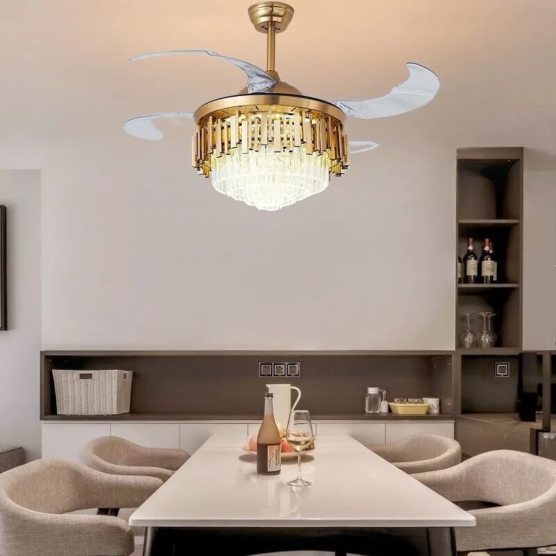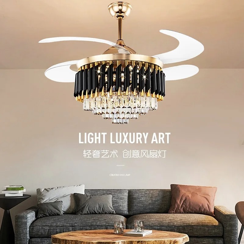 Lâmpada de ventilador de teto de cristal de luxo de 48 polegadas