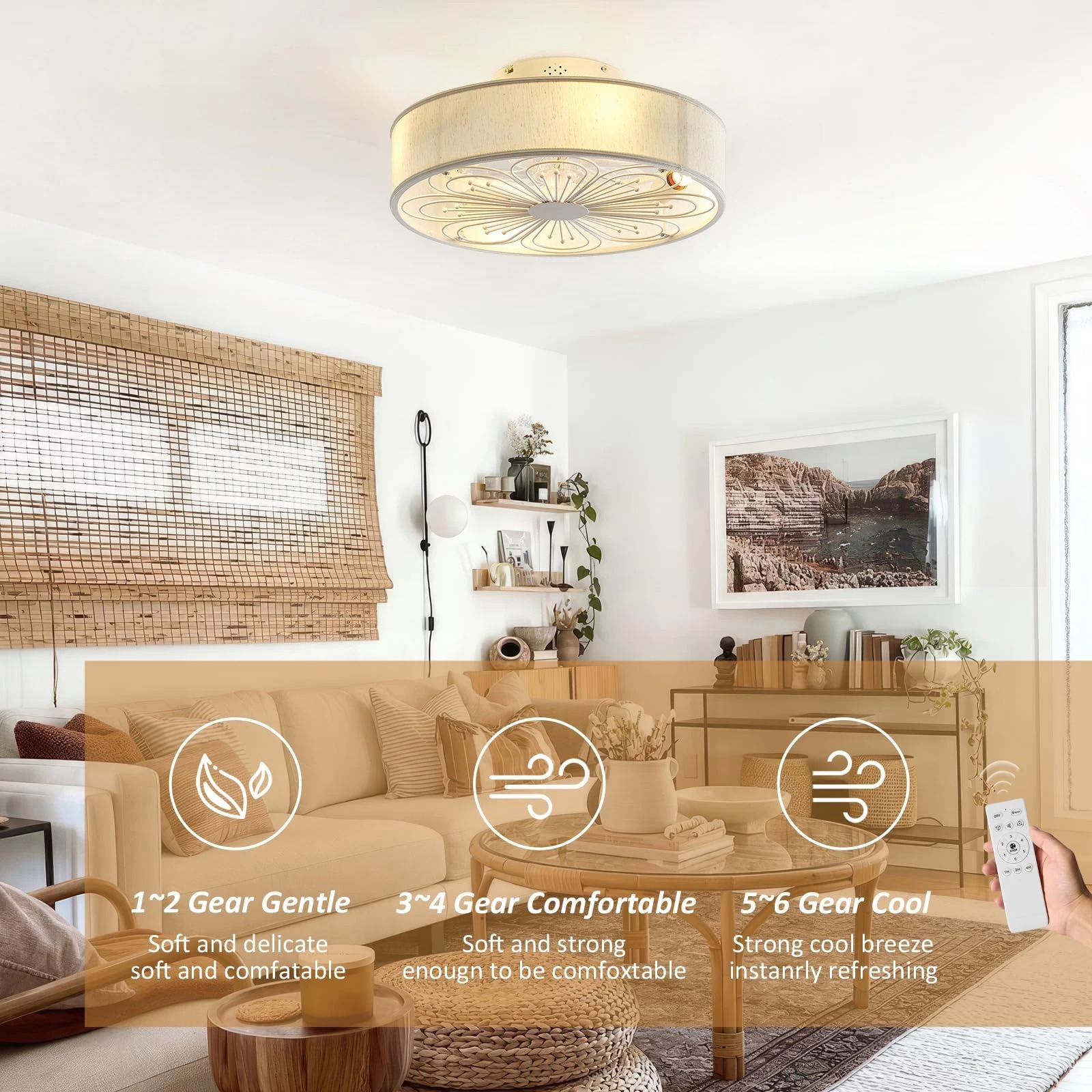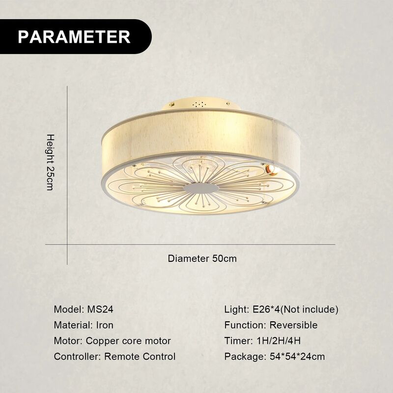 Controle remoto interno 6 velocidades sala de estar 19 polegadas tecido craft ventilador de teto com luz (WH-CLL-60)