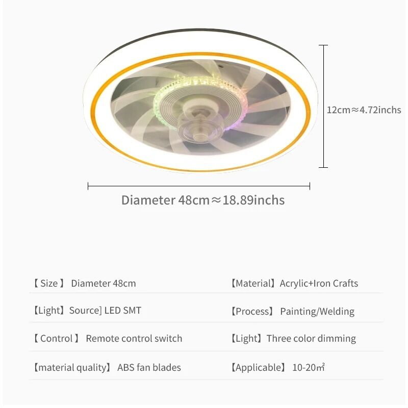 Dimming quarto interior sala de estar sala de jantar Controle remoto RGB fino LED luz ventilador de teto ((WH-CLL-62)