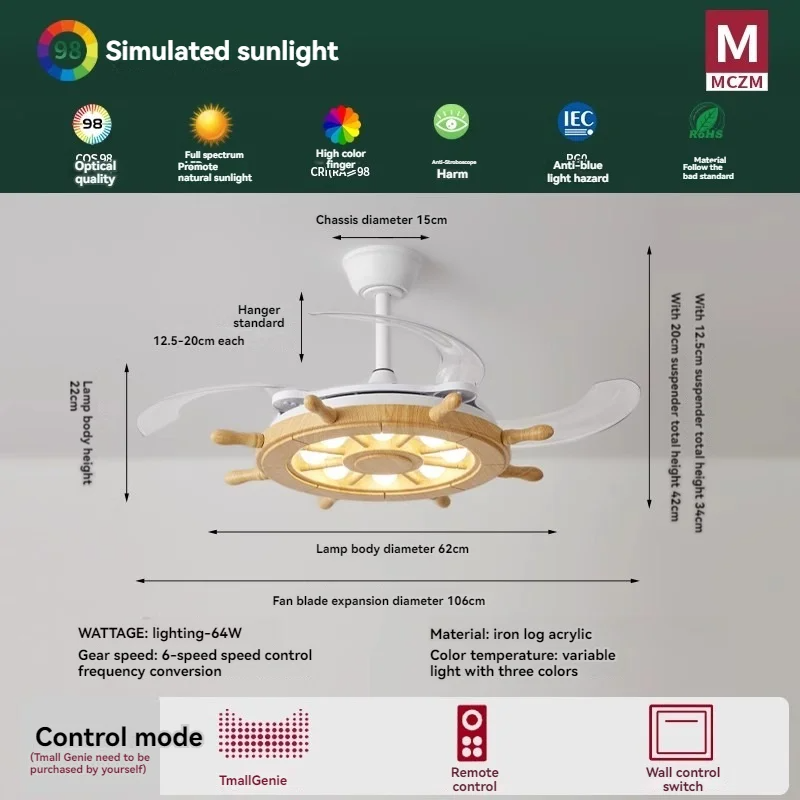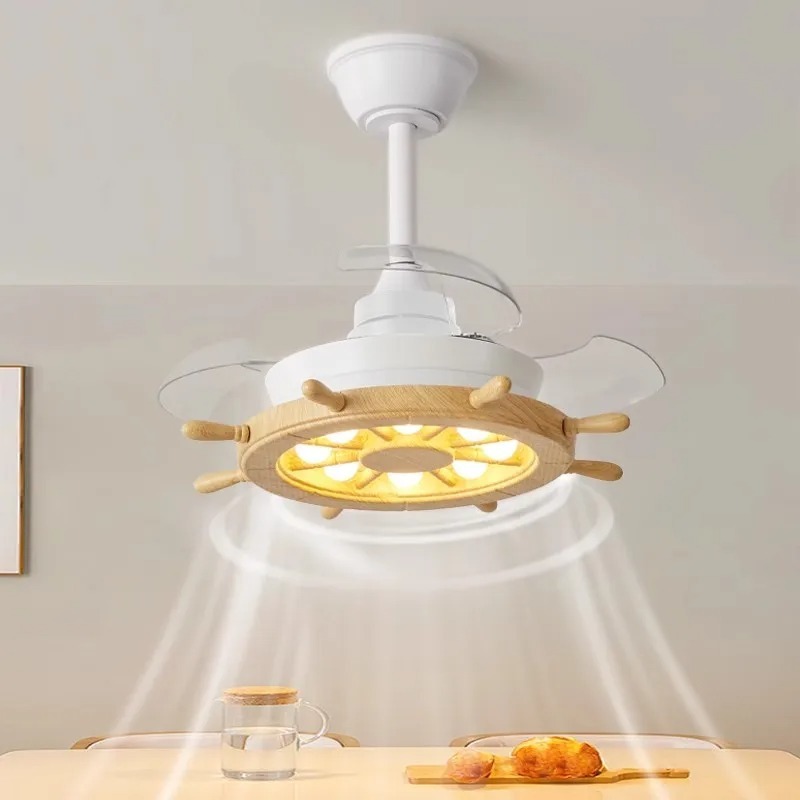 Sala de estar Sala de crianças Alface de madeira crua luz de ventoinha invisível Lâmina de ventoinha de leme Luz de ventoinha de teto (WH-CLL-63)