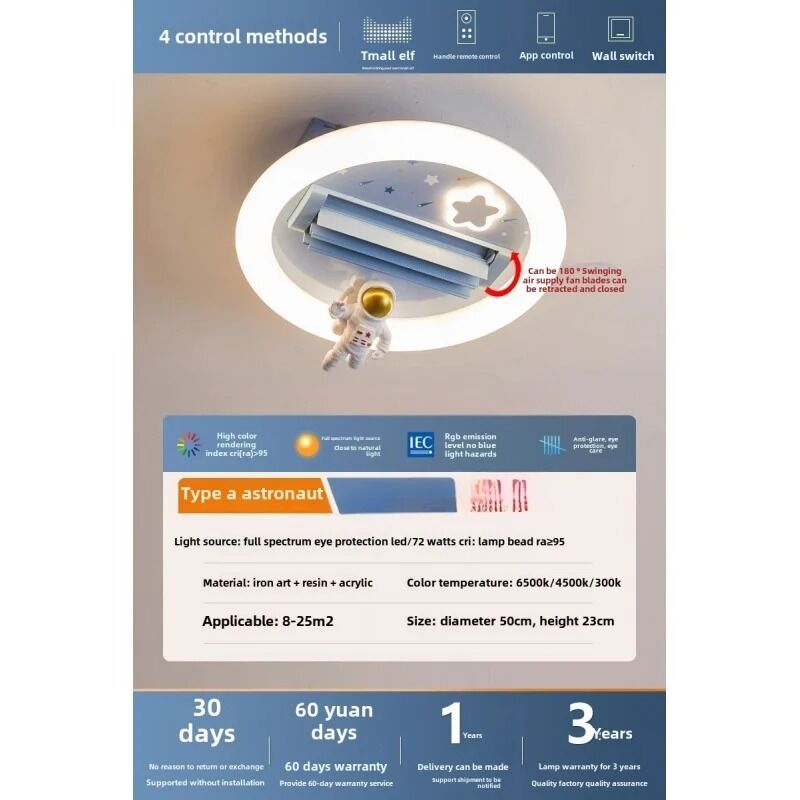 Bedroom Astronaut Cute Bunny Kids Room 180° Swing Supply Supply Bladeless Fan Light (WH-CLL-65)