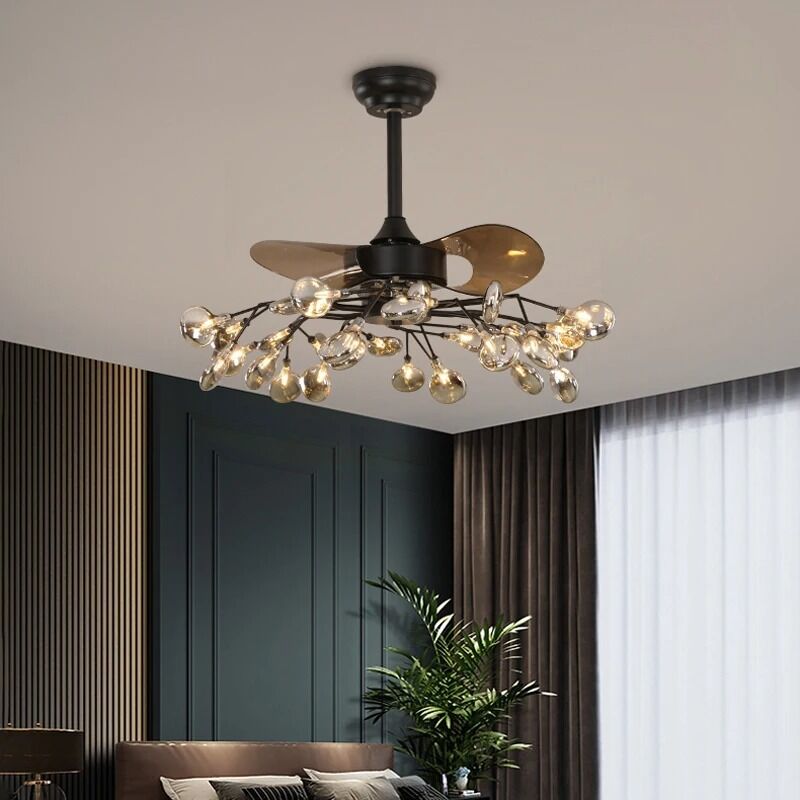 RC dimmable girado para a frente e para trás para sala de estar Branch luz de fogo-de-chamas lâmpada de ventilador de teto ((WH-CLL-66)