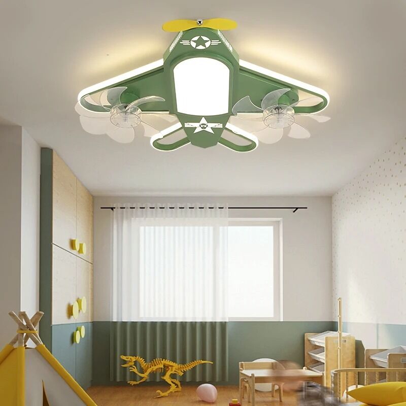 Estudo Sala de jantar Sala de estar Sala de crianças interior Dimmable LED avião Ventiladores de teto com lâmpada ((WH-CLL-76)