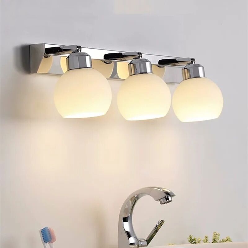 Sala de banho de cristal preto cromo parede de vaidade aço inoxidável leve sobre luzes de espelho