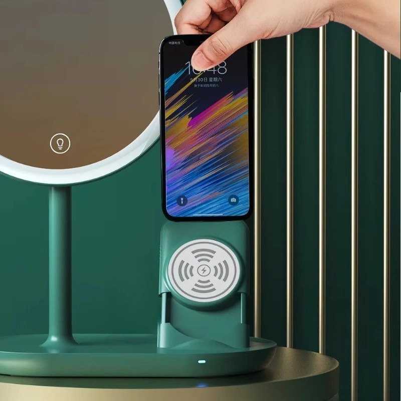 Espelho USB recarregável com carregador sem fio Portátil 3 cores LED luzes de maquiagem Espelho com lâmpada