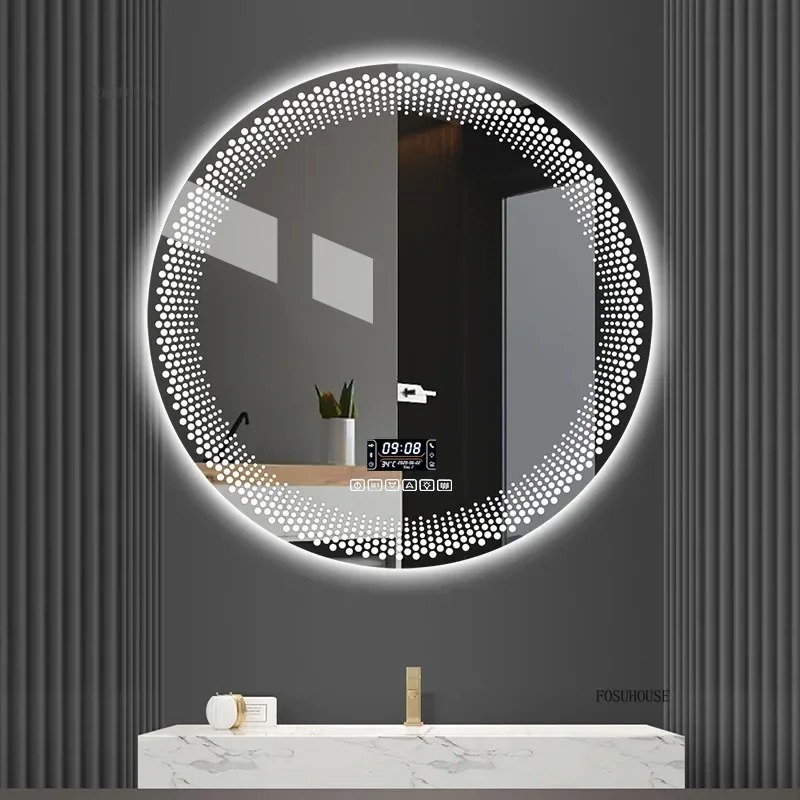 Ecrã de toque led inteligente simples à prova de chama Sensor redondo anti-neve Espelho com luz ((WH-MR-101)