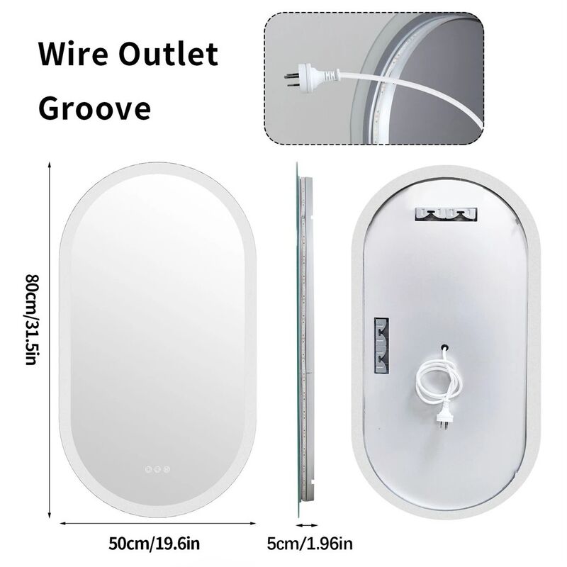 Dimmable 3 cores Anti-Fog Light Memory IP65 CRI95 Grande Espelho Oval montado na parede com lâmpada