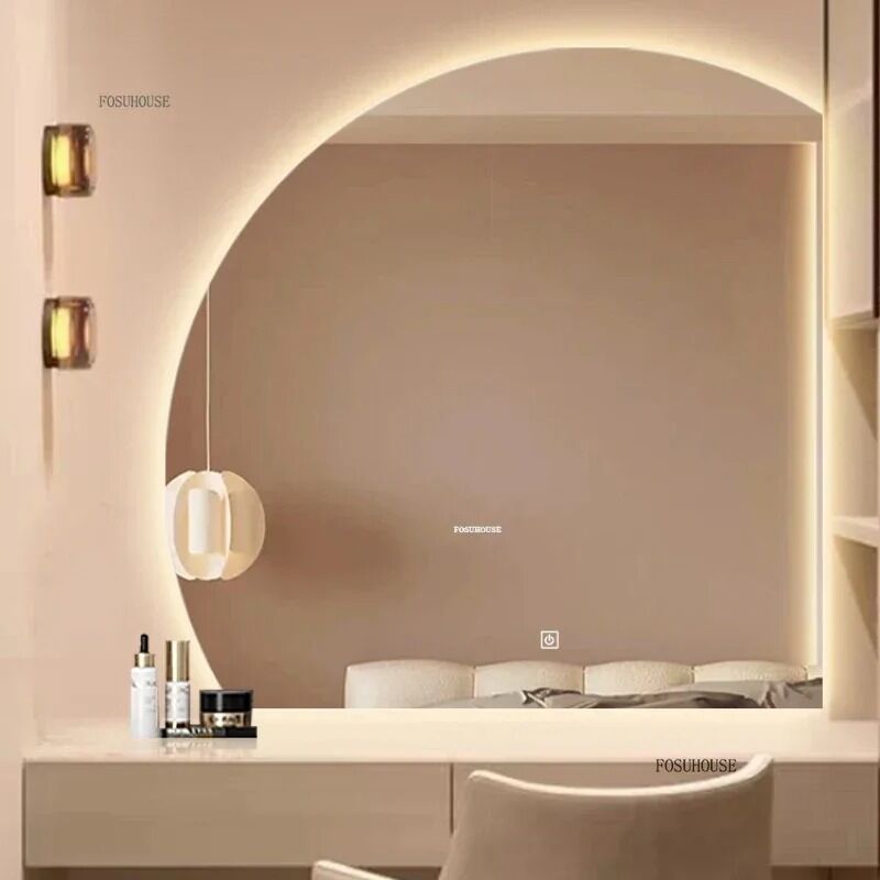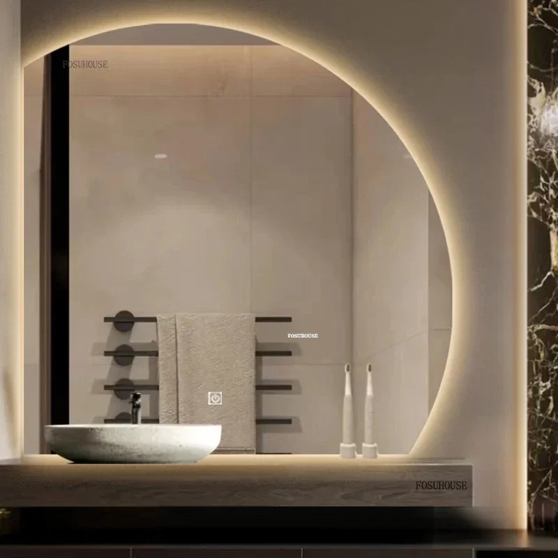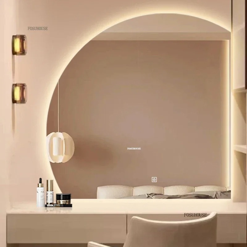 Espelhos de banho semicirculares nórdicos Espelhos inteligentes montados na parede com lâmpada ((WH-MR-103)