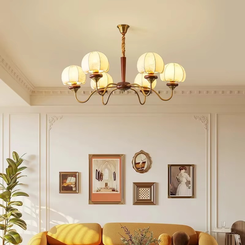 Abajur de tecido de madeira maciça americana romântica lustre de quarto vintage (WH-VP-298)
